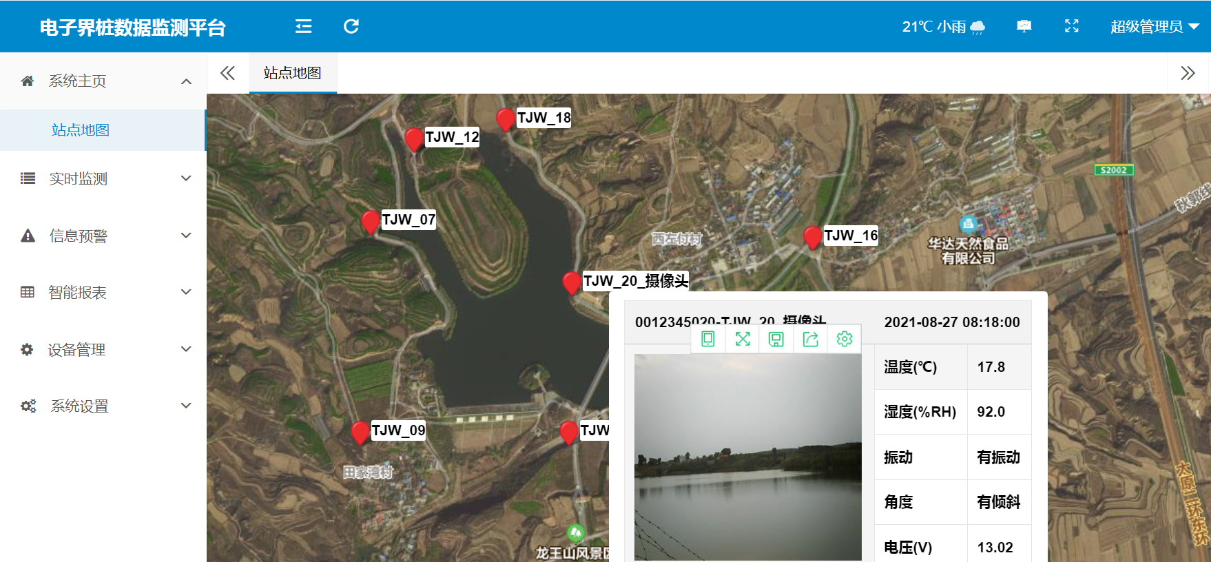 软件分两部分数据接收软件和管理系统软件,部署在管理中心,该软件将承接所管理界桩的监测信息。