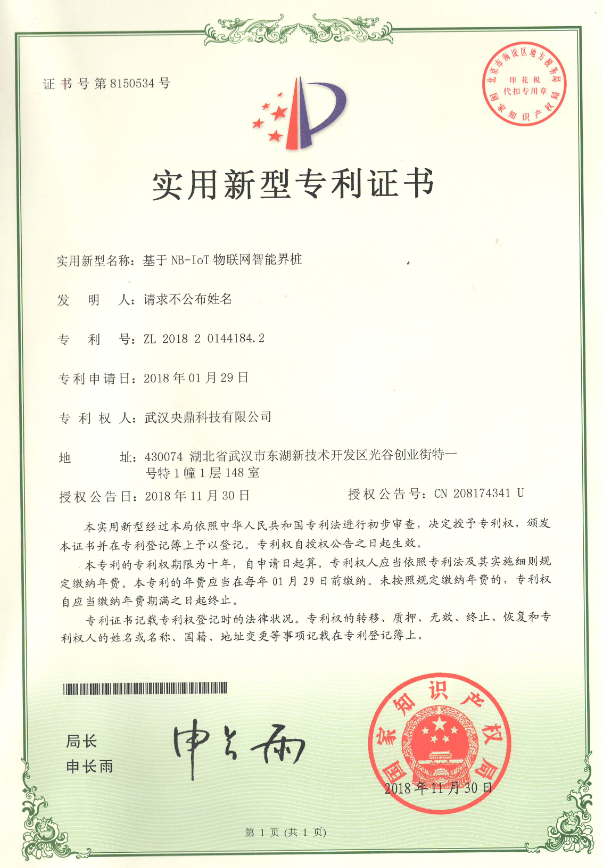 电子界桩专利证书